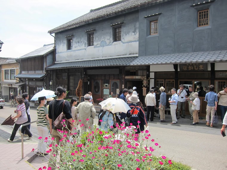この日は、お天気にも恵まれ、まだ5月だというのに気温が夏なみに上昇する中、まずは、「八千代座」の見学からでした。八千代座(写真)は、明治43年に建築された江戸時代の伝統的な芝居小屋の様式を今に伝える芝居小屋です。国の指定重要文化財でもあります。