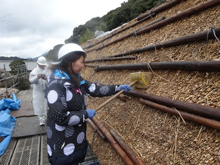 酒井田柿右衛門邸 茅葺き作業見学