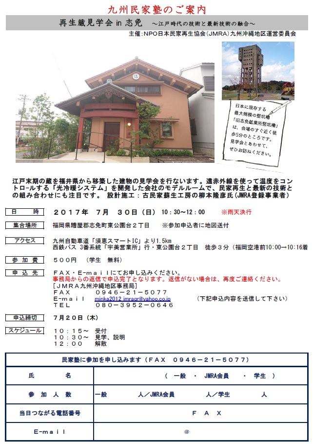 【申込み】 JMRA九州・沖縄地区事務局 FAX0946-21-5077